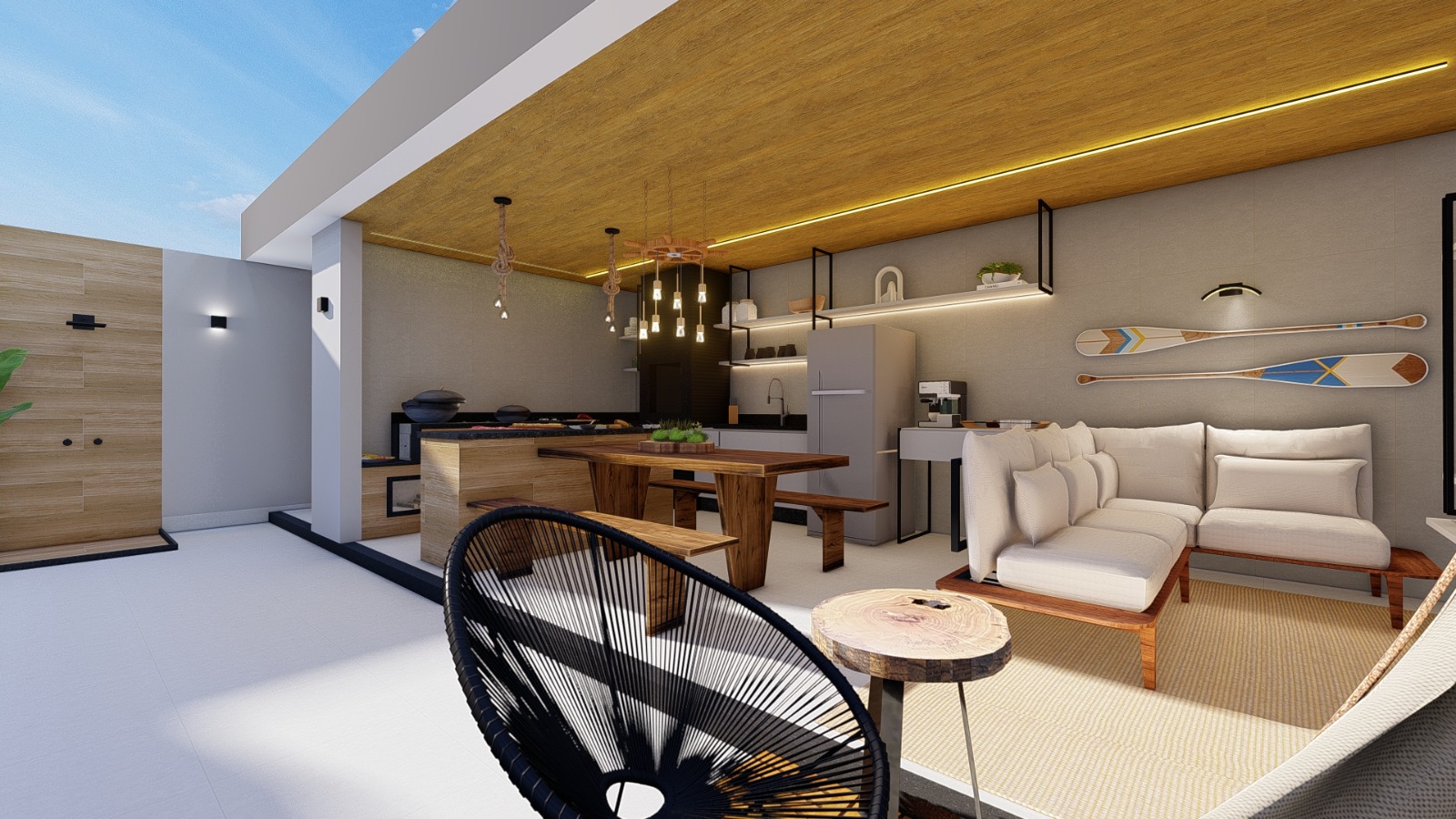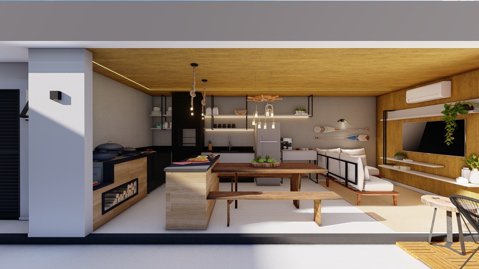 Nosso desafio era claro: transformar essas memórias em arquitetura. Criar um ambiente que, mesmo novo, já nascesse com alma. Cada escolha no projeto foi pensada para despertar pertencimento, conforto e afeto — mesmo sem estarmos fisicamente presentes.