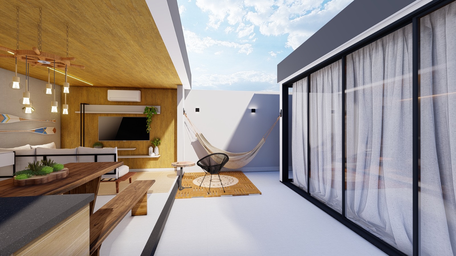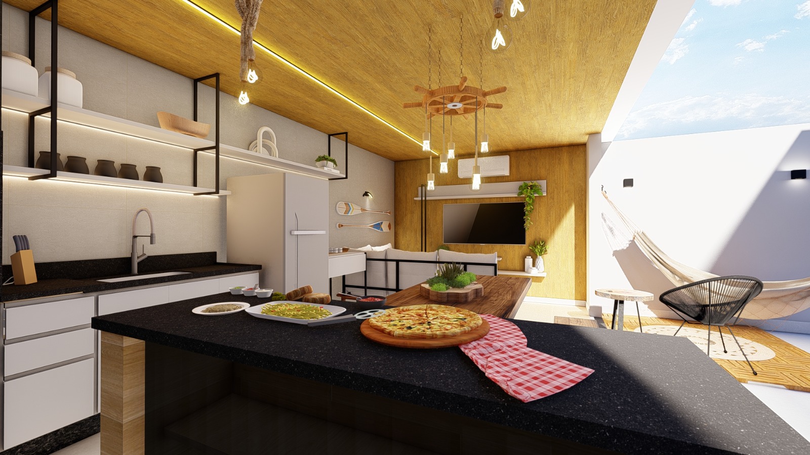 Localizado em Manaus no estado do Amazonas, neste projeto, traduzimos lembranças da infância no sítio da avó — o fogão a lenha, a rede na varanda, a calmaria da vida no barco em escolhas que vão além da estética. Cada detalhe carrega afeto e propósito, criando um ambiente que conta histórias e desperta pertencimento. Na nossa conversa, mesmo à distância, o cliente nos contou o que realmente esperava desse lar.