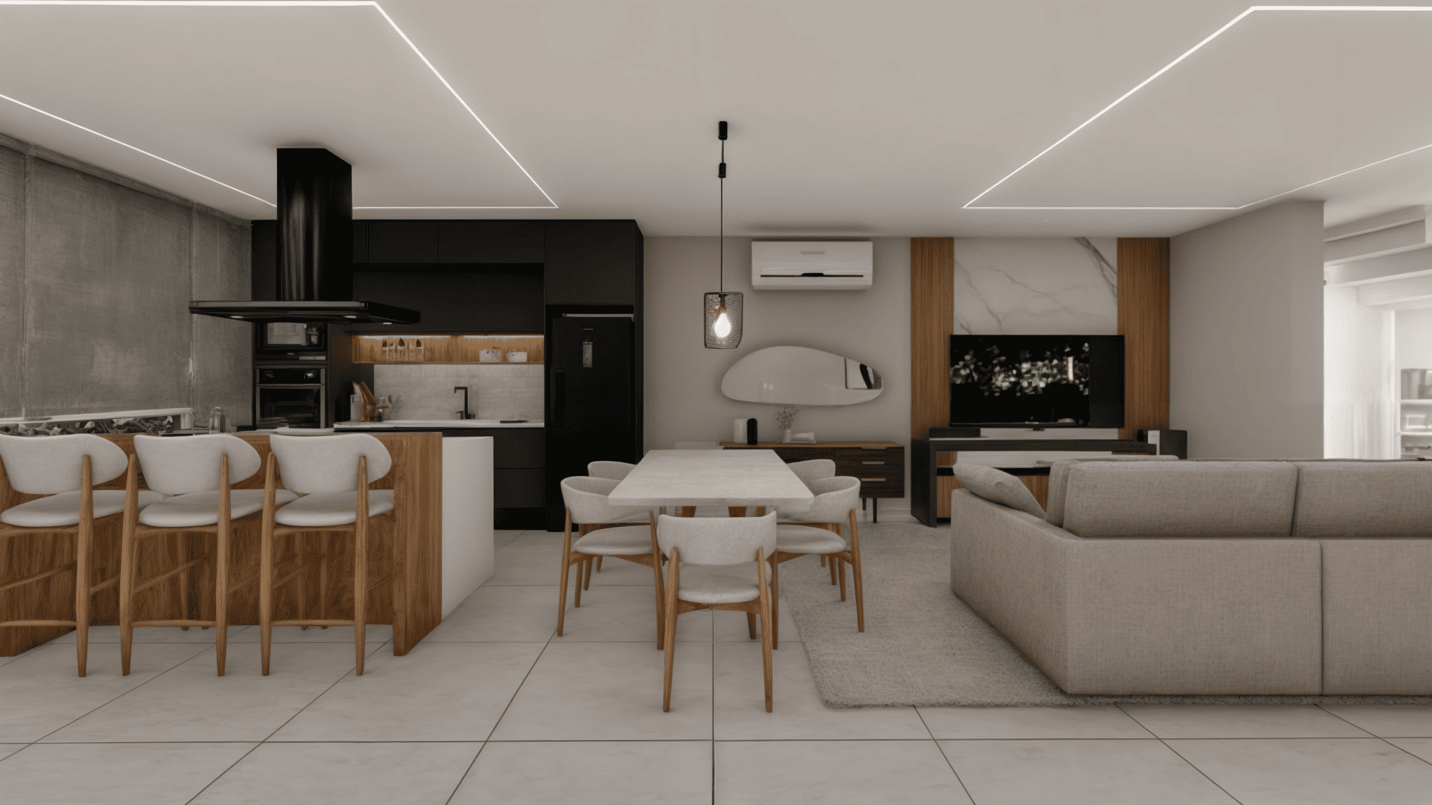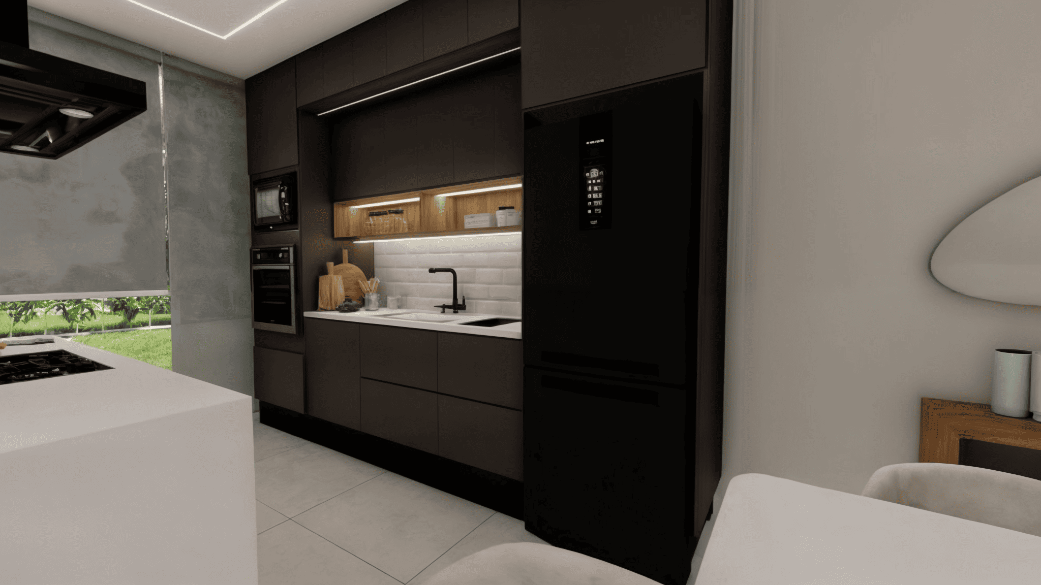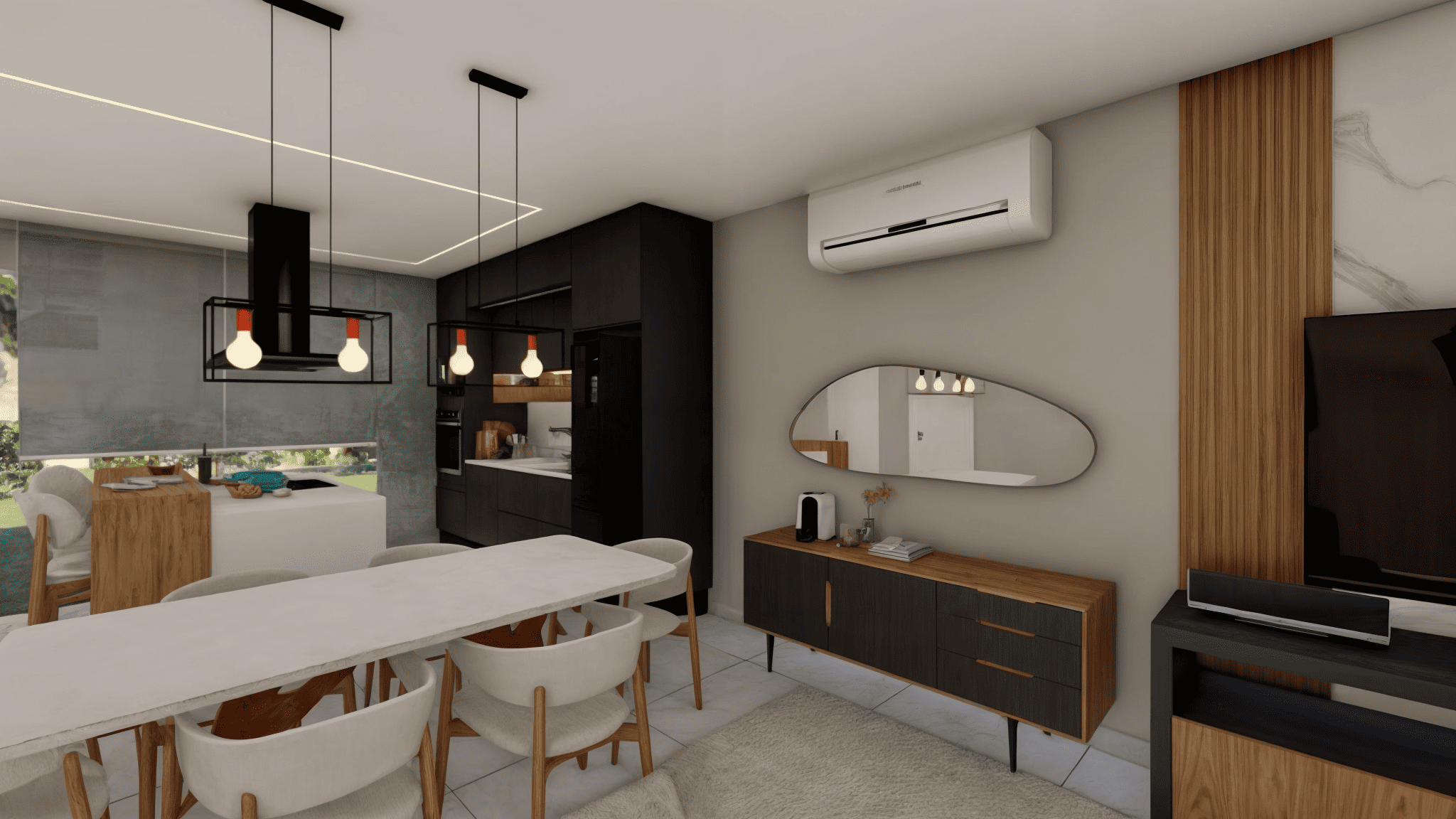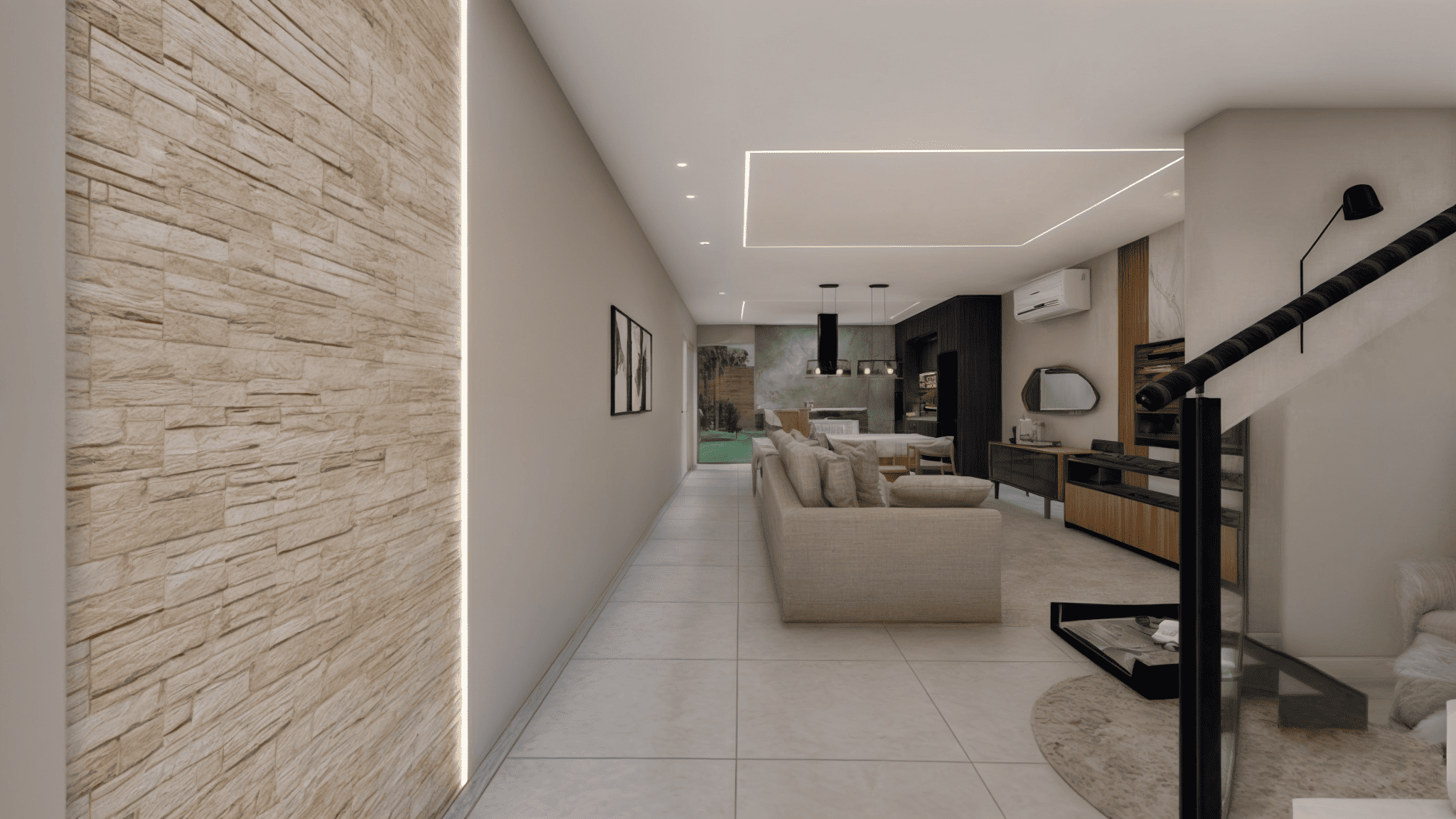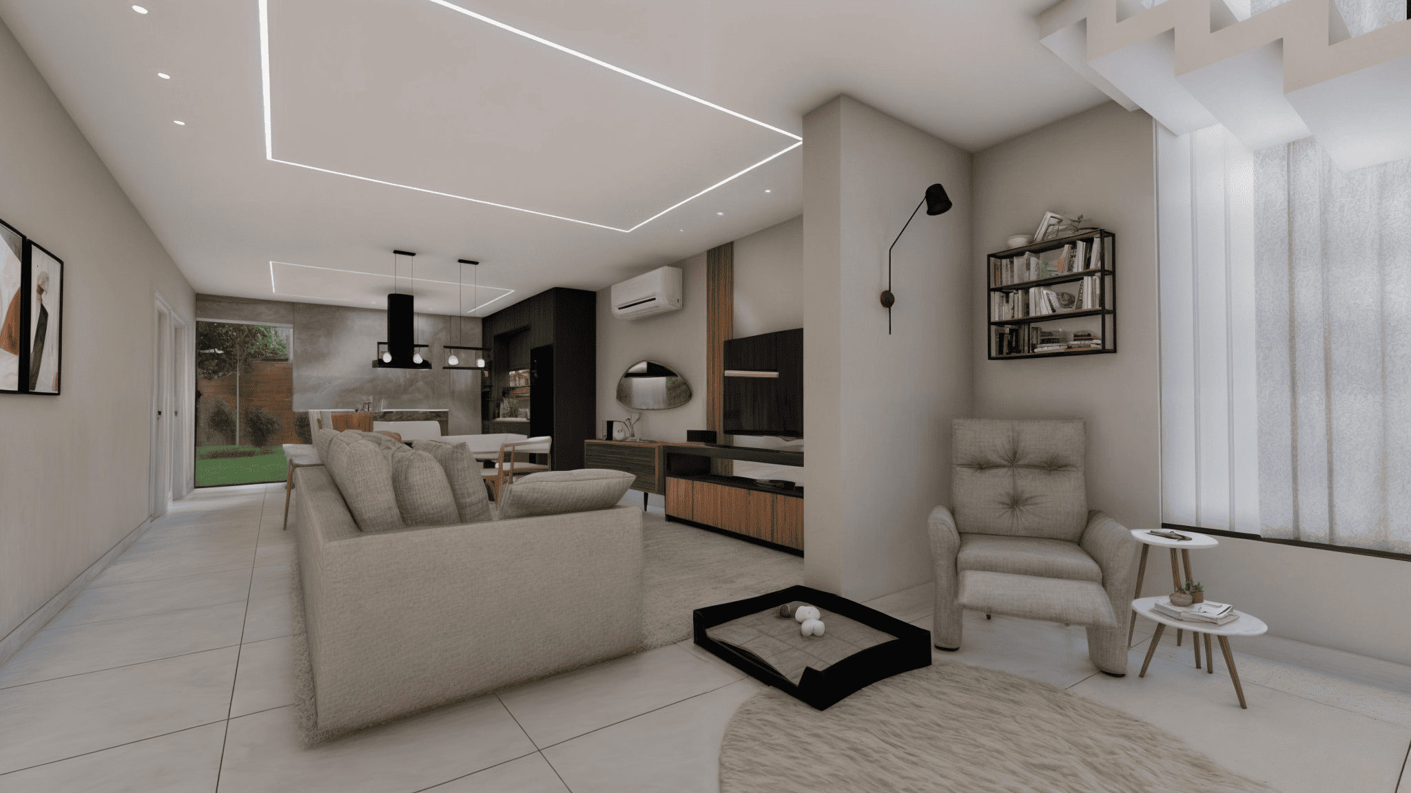 Essa casa fica localizada em Inoã, na cidade de Maricá no interior do estado no Rio de Janeiro. Fomos contratadas no intuito de trazer a real identidade do casal para cada ambiente. Mais que uma casa, uma realização de um sonho de um casal, uma casa que reflete conforto, tecnologia e sem perder a essência do casal.